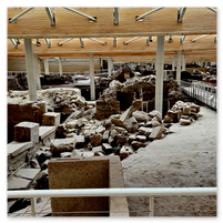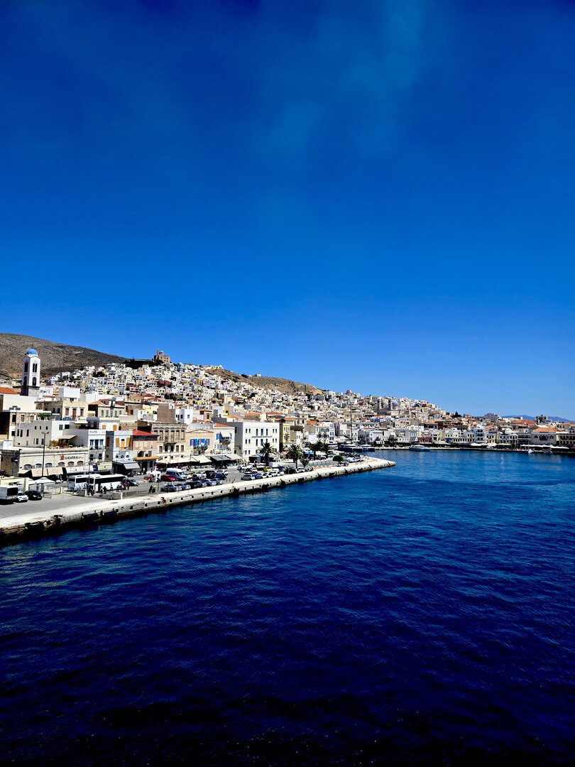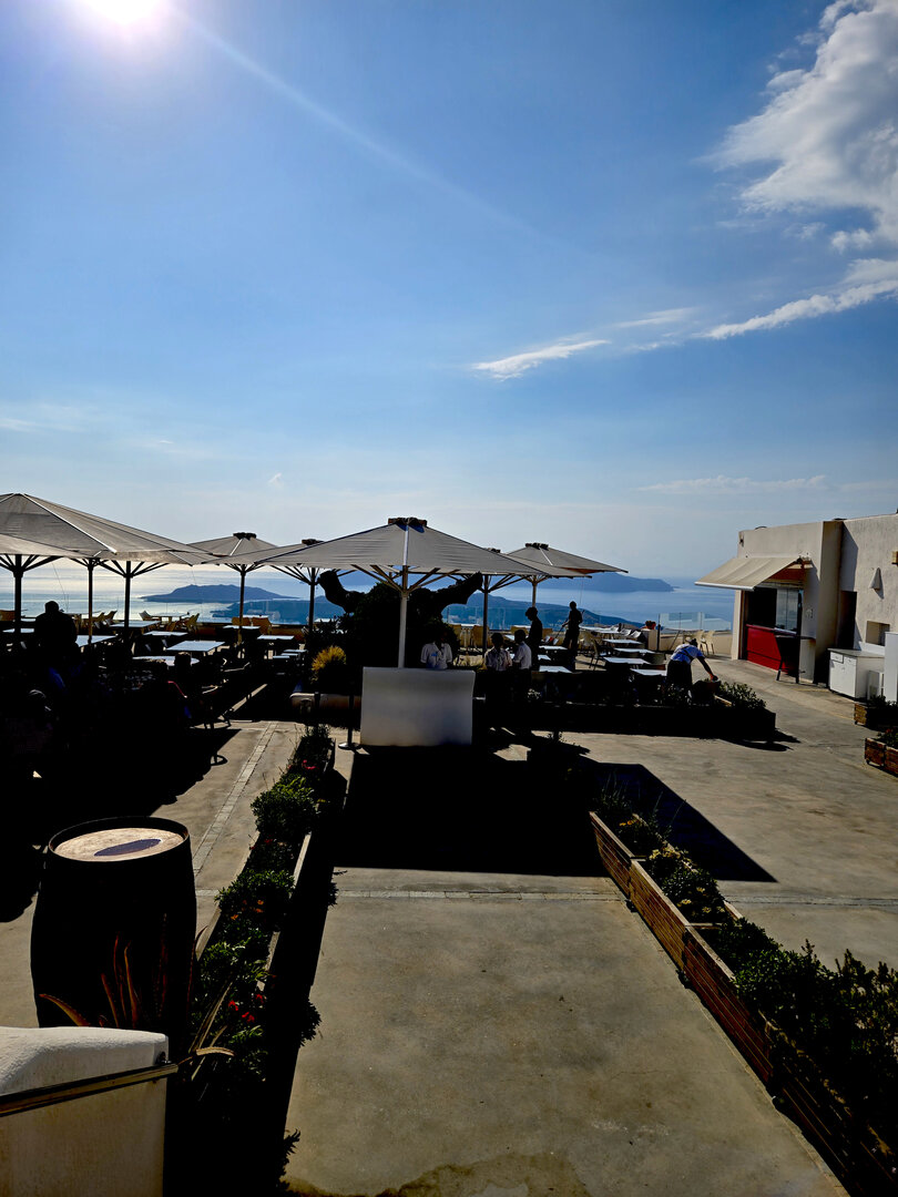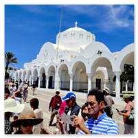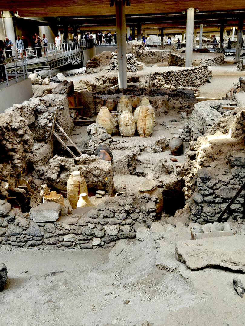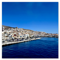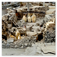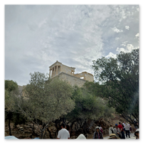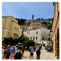 A ferry over to Santorini to spend a few days there.  First was a tour of Fira, the capitol of Santorini.  Visits to a distillery and two local wineries with dinner at the final winery.  Then a visit to Megalochori, a traditional village followed by a trip to an archaeological excavation of Akrotiri.  Akroitri was a Bronze Age settlement that was frozen in time after a volcanic eruption occurred about 3600 years ago.  Finally a visit to Oia and the beautiful white buildings and blue trim.  The blue domed church is often a symbol of Greece displayed in advertisements, travel literature, etc..  Ended with a stunning sunset.