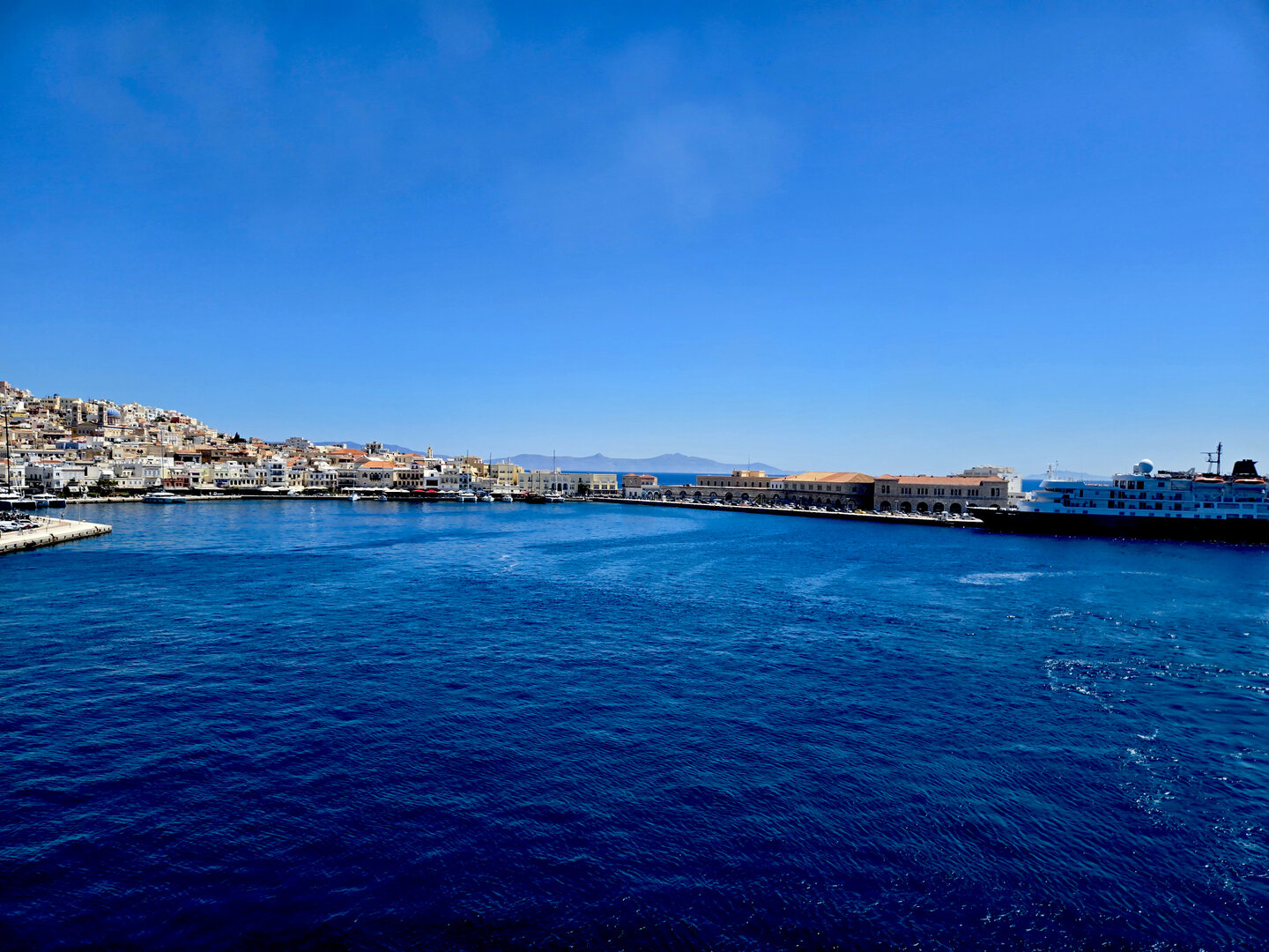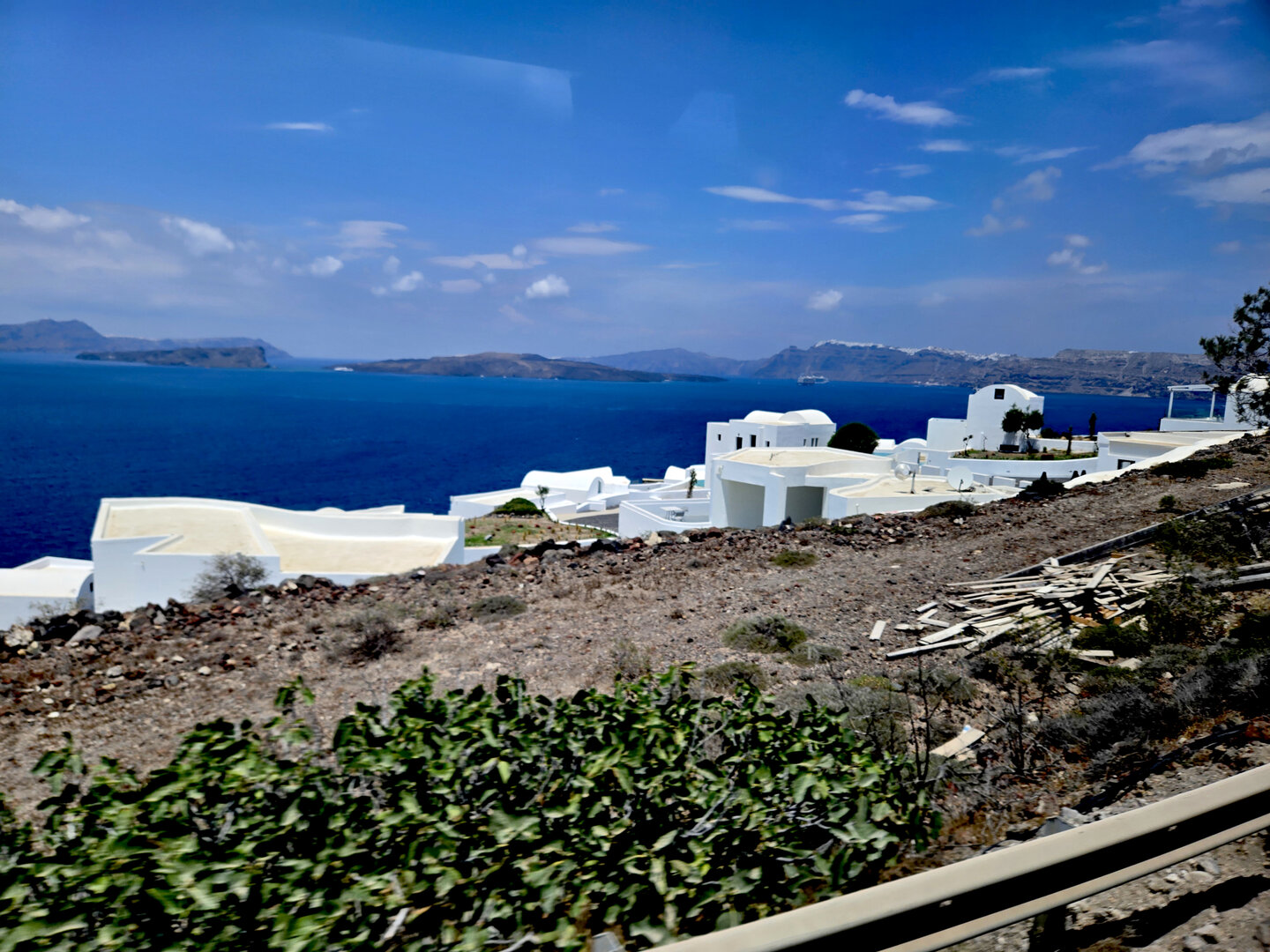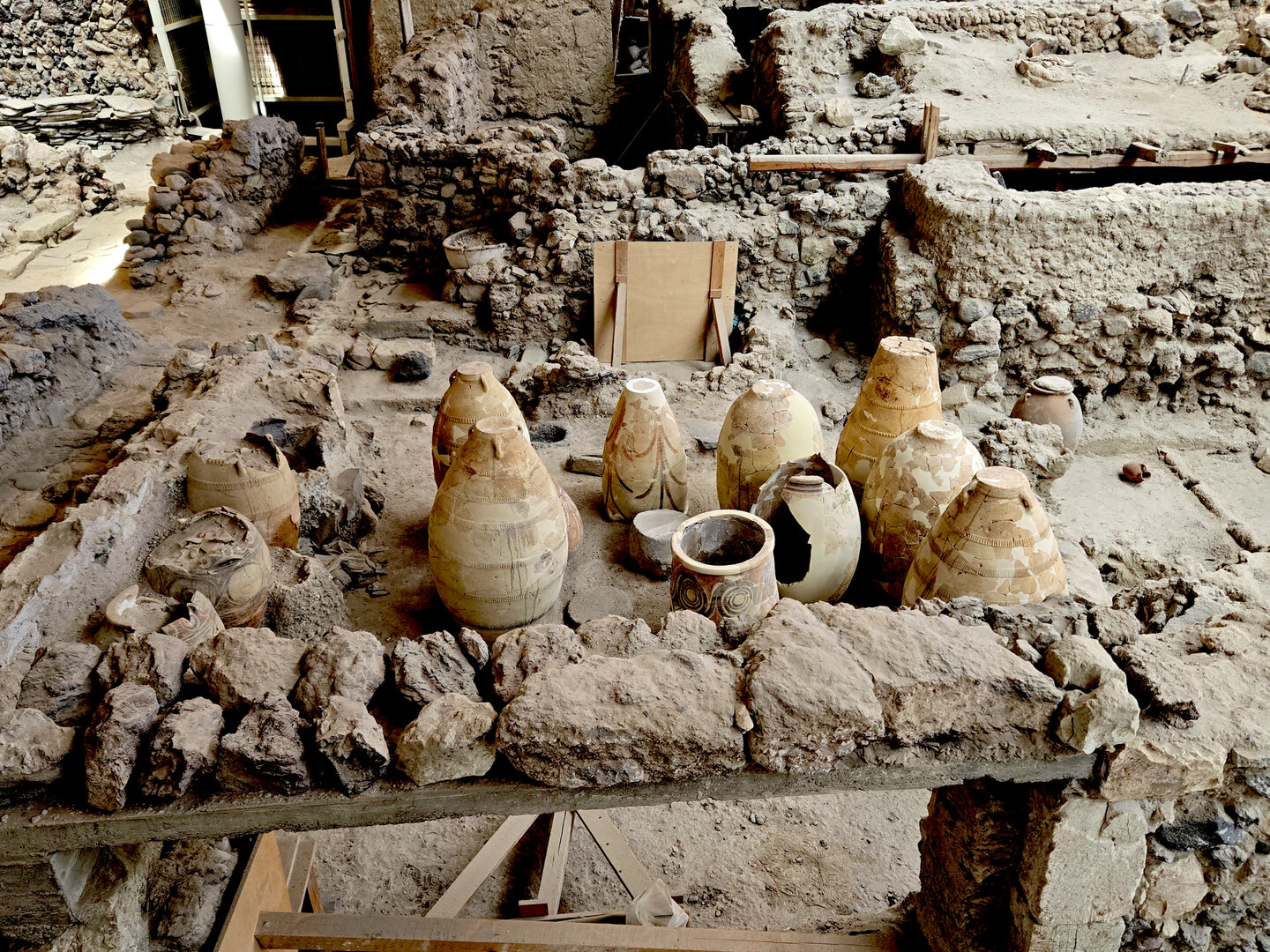 A ferry over to Santorini to spend a few days there.  First was a tour of Fira, the capitol of Santorini.  Visits to a distillery and two local wineries with dinner at the final winery.  Then a visit to Megalochori, a traditional village followed by a trip to an archaeological excavation of Akrotiri.  Akroitri was a Bronze Age settlement that was frozen in time after a volcanic eruption occurred about 3600 years ago.  Finally a visit to Oia and the beautiful white buildings and blue trim.  The blue domed church is often a symbol of Greece displayed in advertisements, travel literature, etc..  Ended with a stunning sunset.