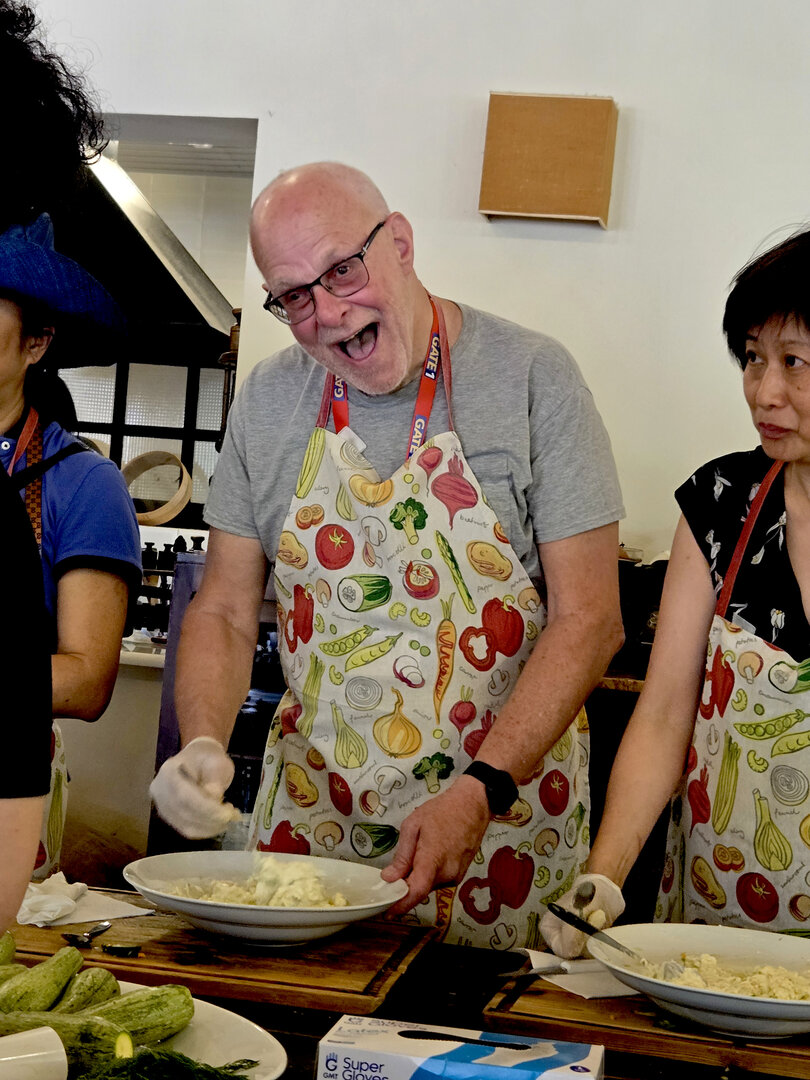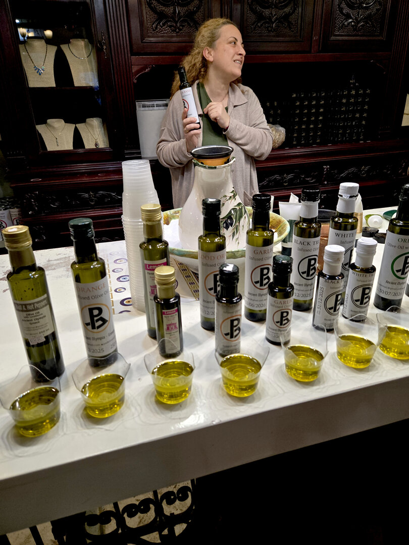The route to Olympia.  Passed through a number of areas such as the Corinth Canal bringing us back to the mainland from Peloponnese Peninsula, Nauplio, Mycenae and finally Olympia.  We visited a local store where we got an education about Greek olive oil and attended a cooking class where I made Tzatziki Sauce, followed by native Greek dance lessons.  The Olympia Archaeological Museum, Sanctuary of Olympian Zeus and the first Olympic Stadium where the first Olympic Games were held in 776 B.C..