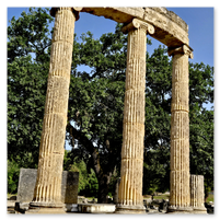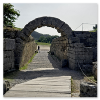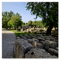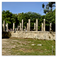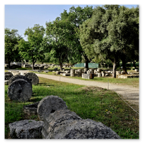 The Olympic Stadium was something of an anti-climatic event.  We passed through something of a stone archway with high stone walls that led into the stadium.  Impressive!  However, the term stadium is not quite what we saw on the other side.  An open field with small hills on the side to sit on would be more like it.  You will see that in the pictures that follow.  The stadium is included in the second group.