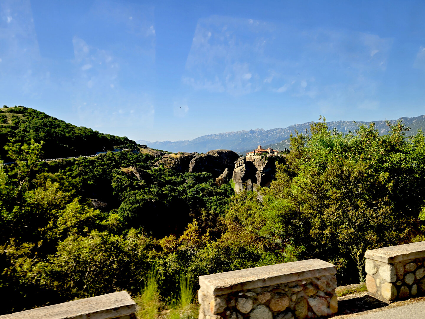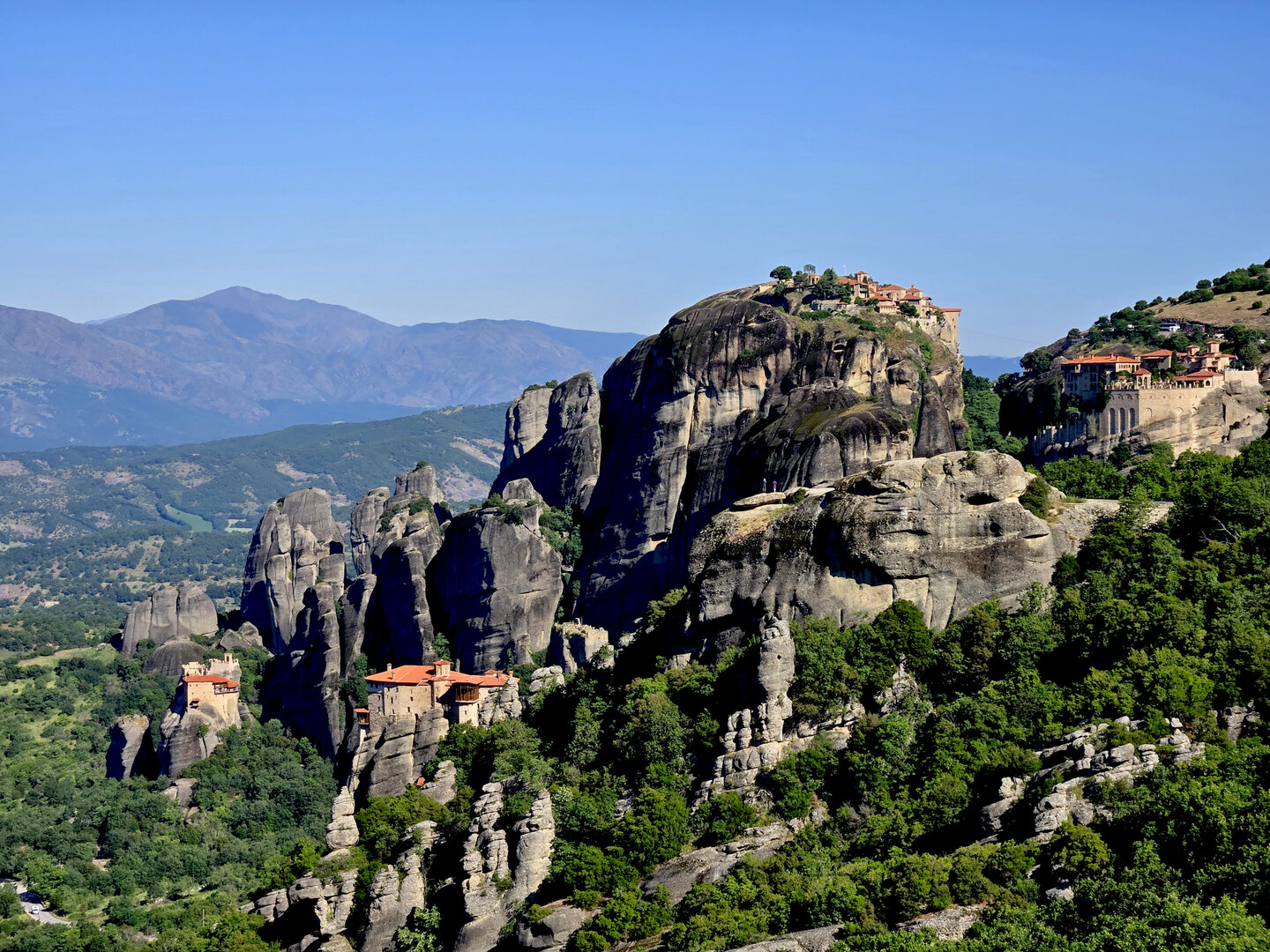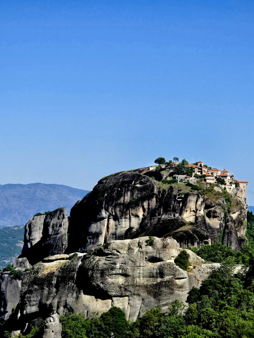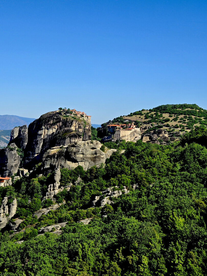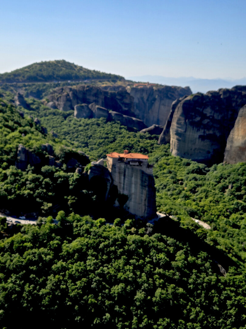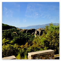 On to Meteora.  Meteora means "suspended in air" and the description and meaning couldn't be more apropos.  Eastern Orthodox monasteries built hundreds of feet high, on top of bizarre rock formations,   Also known as "Monasteries in the Sky".  It is hard to comprehend how some of these were built and how they got the building materials up there, but there they are.