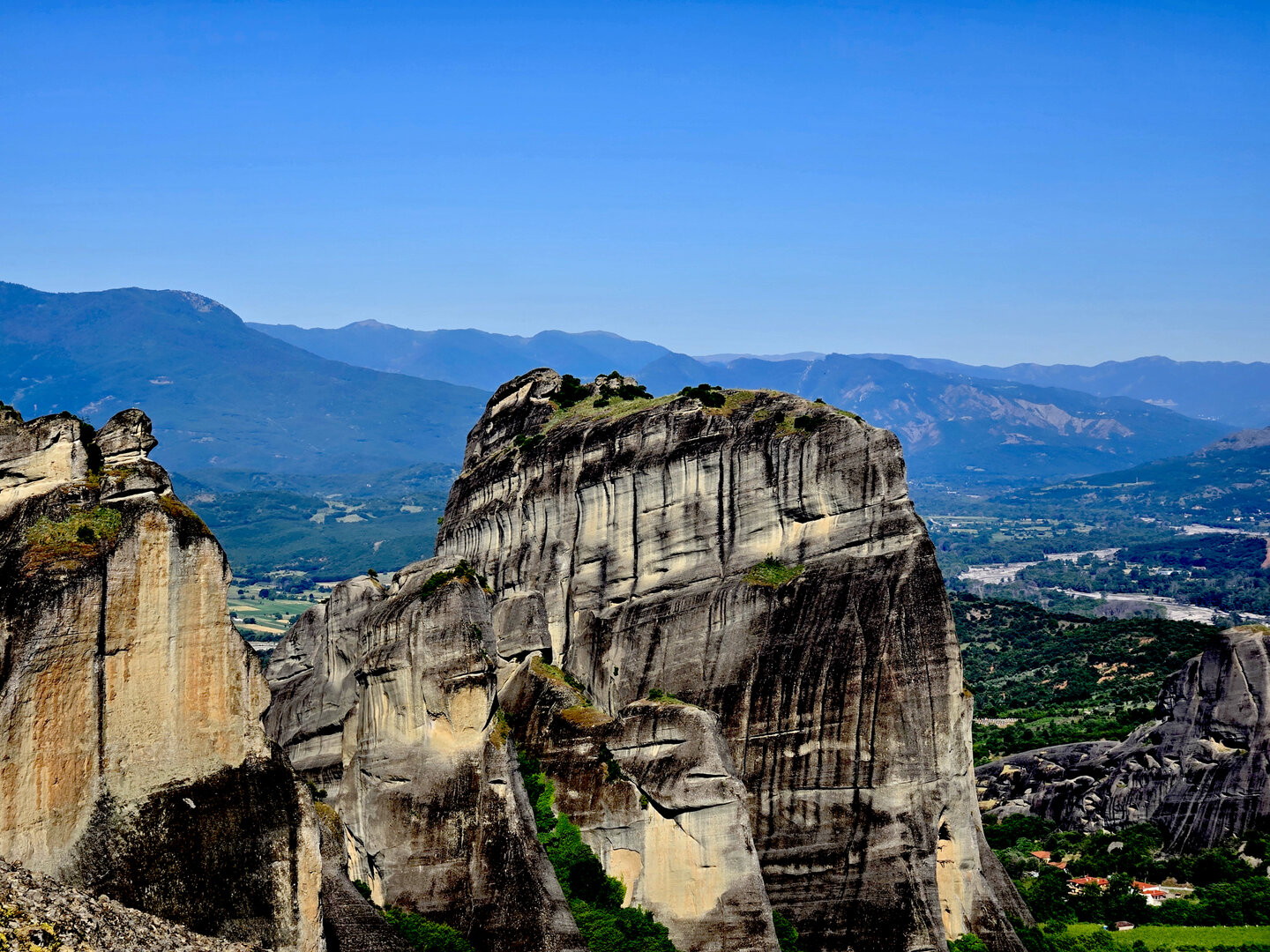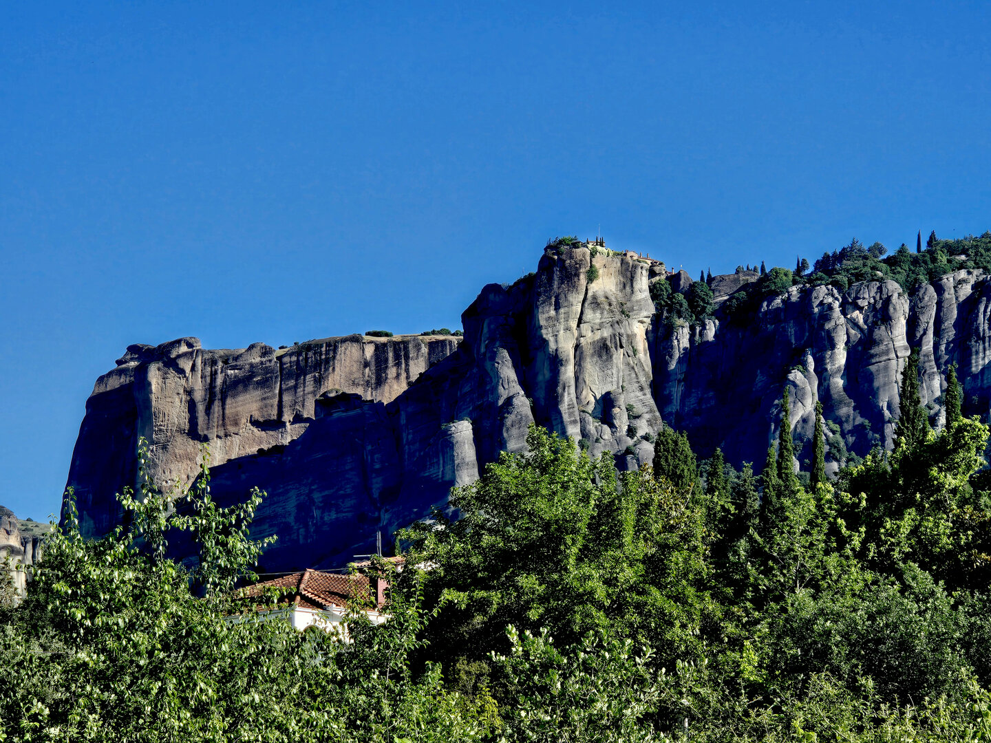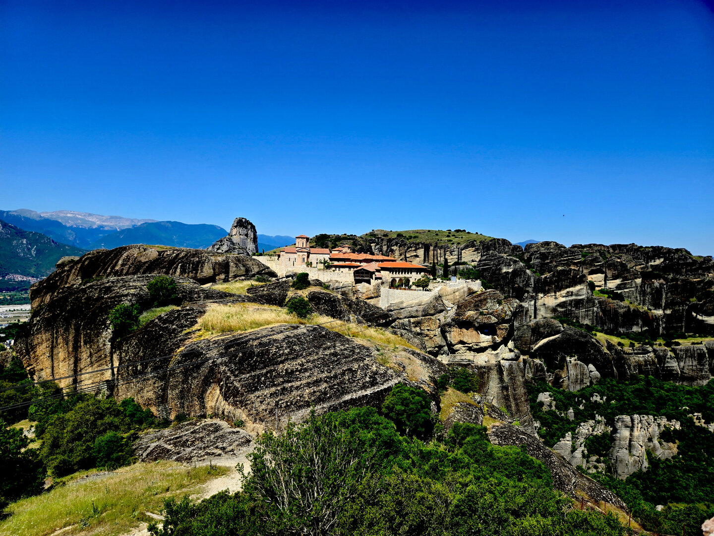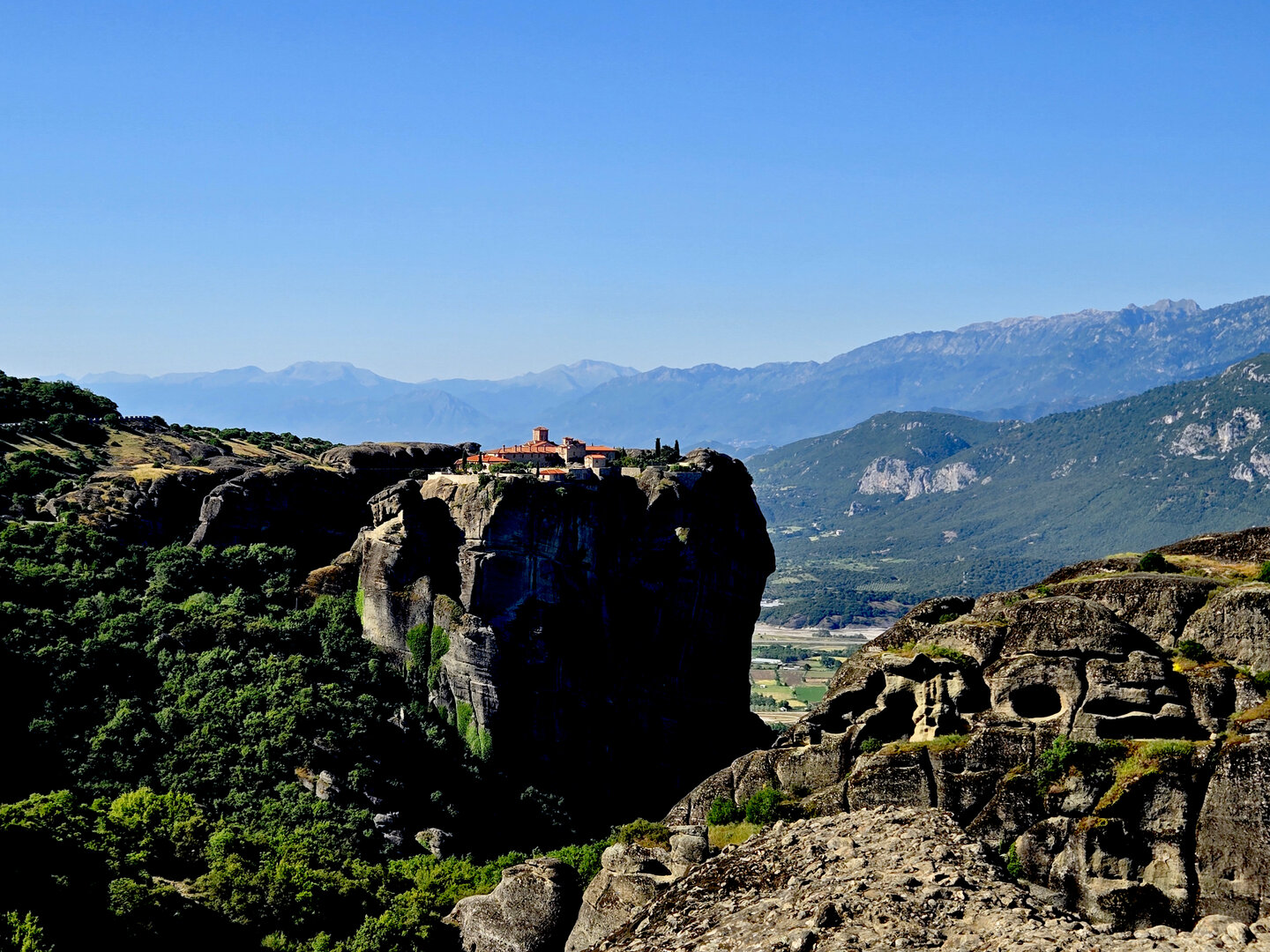 On to Meteora.  Meteora means "suspended in air" and the description and meaning couldn't be more apropos.  Eastern Orthodox monasteries built hundreds of feet high, on top of bizarre rock formations,   Also known as "Monasteries in the Sky".  It is hard to comprehend how some of these were built and how they got the building materials up there, but there they are.