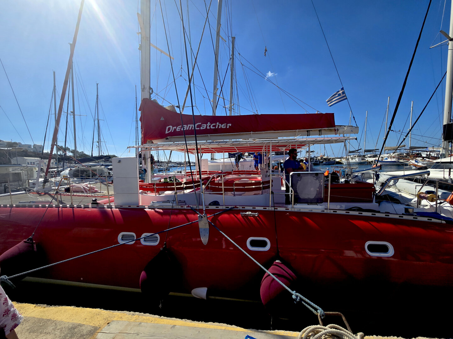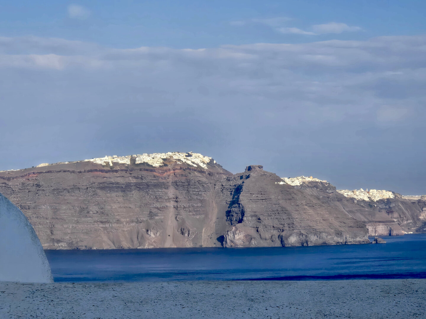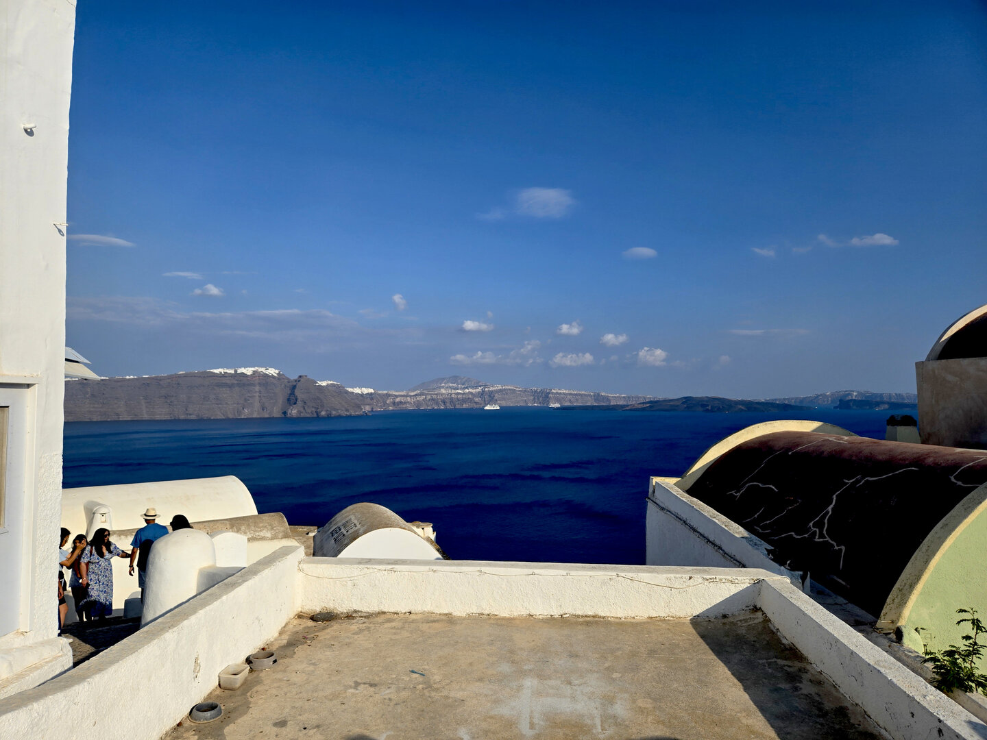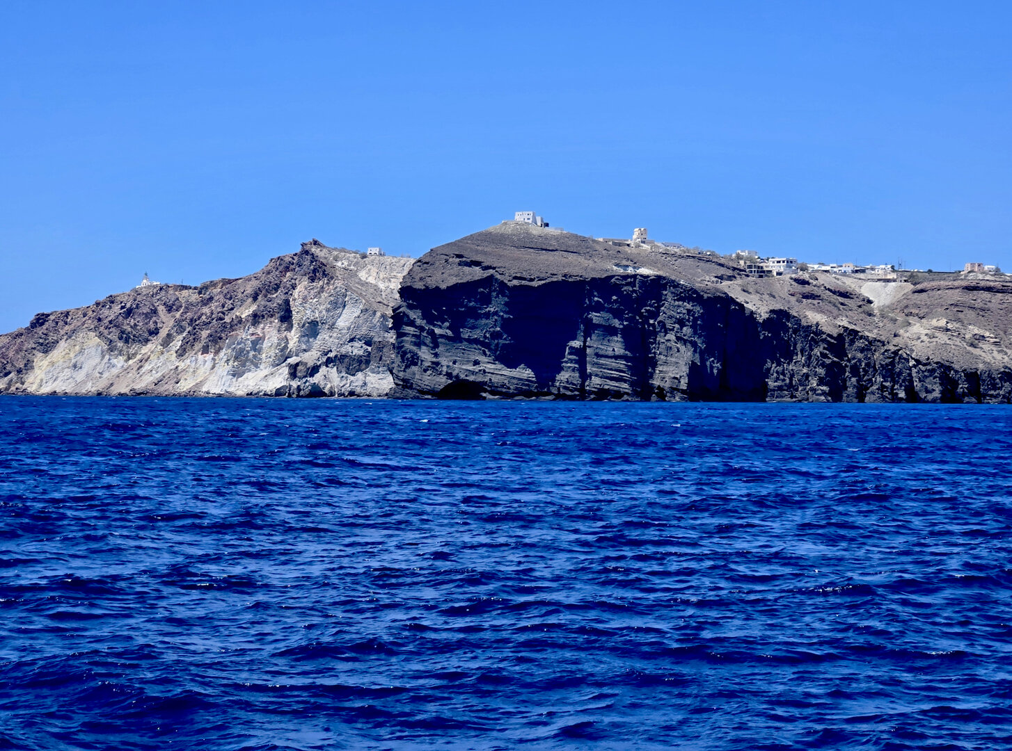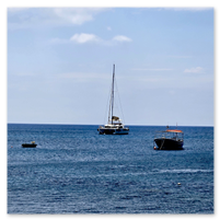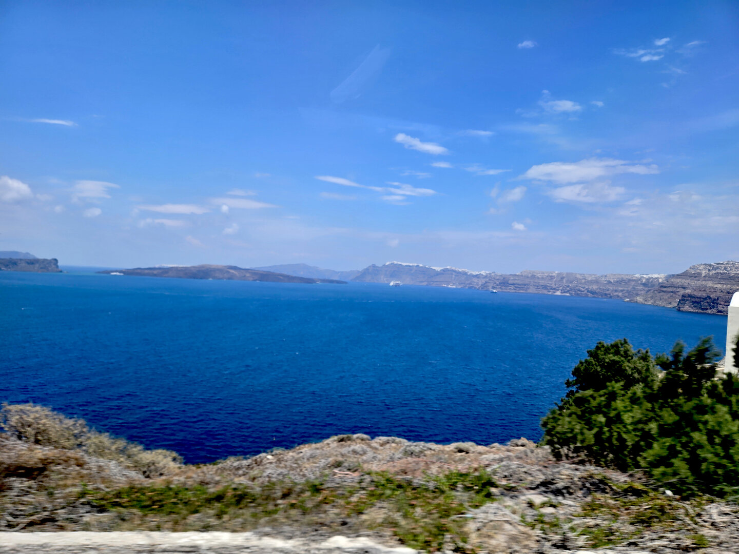 Our final full day in Greece, we took a catamaran tour of Santorini.  When we left the dock for the first hour heading to a cove the wind was strong and being on the water a bit brisk.  Joyce was not a happy camper.  However, we arrived at the cove, the sun was out, the wind was gone and it was beautiful.  The trip back was much better too.