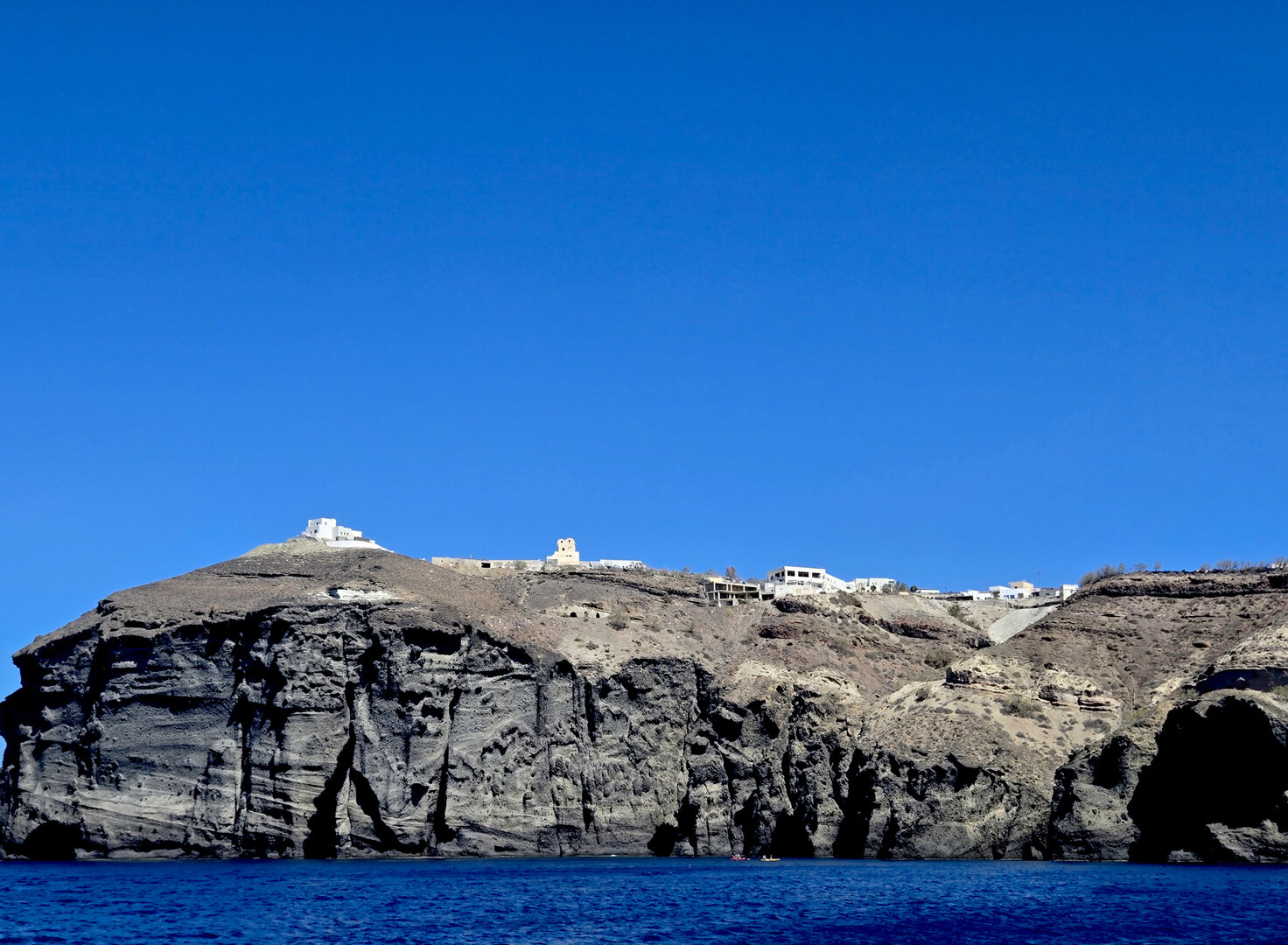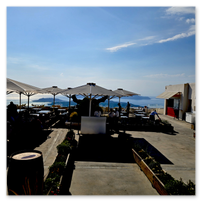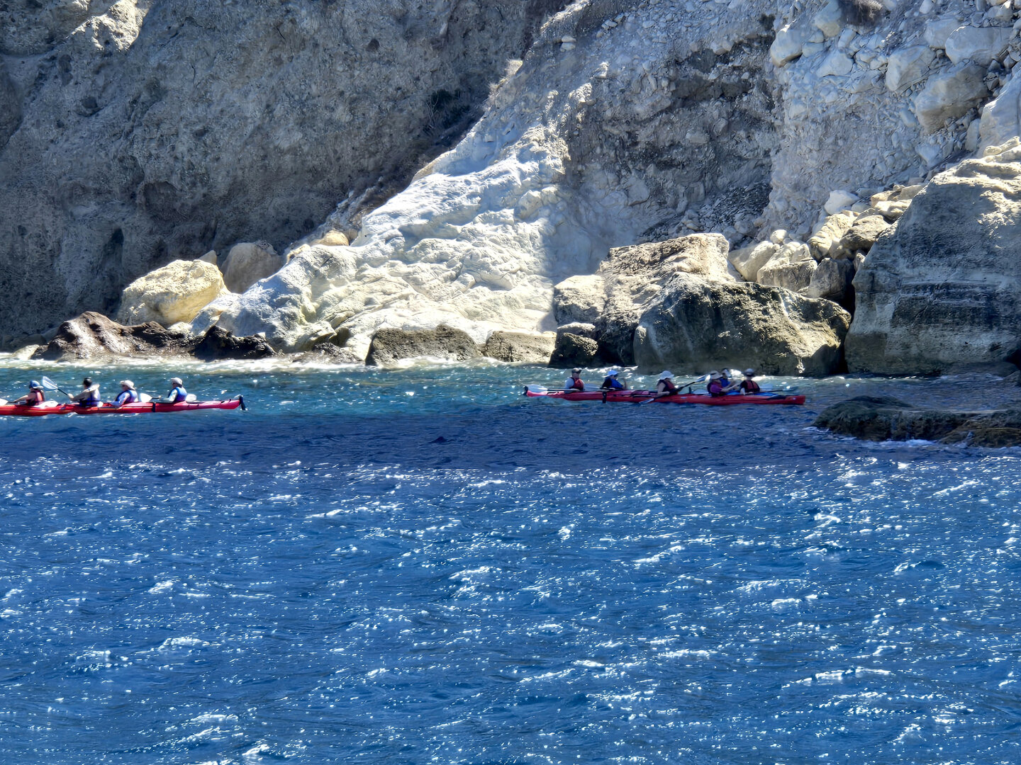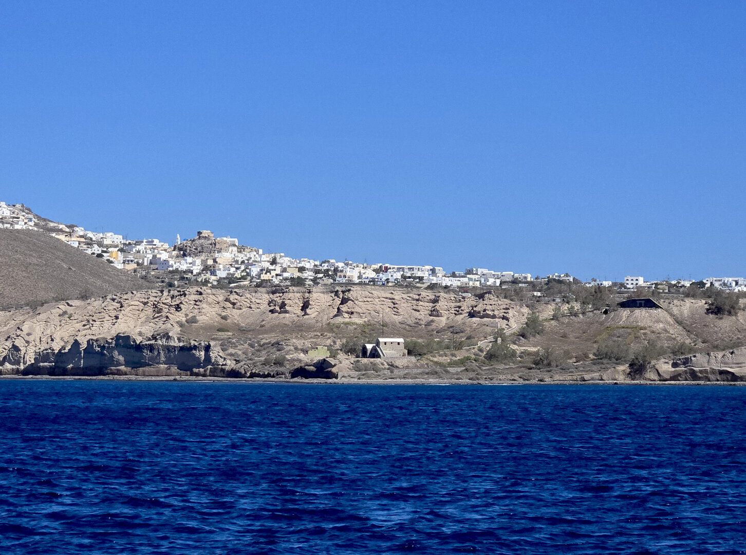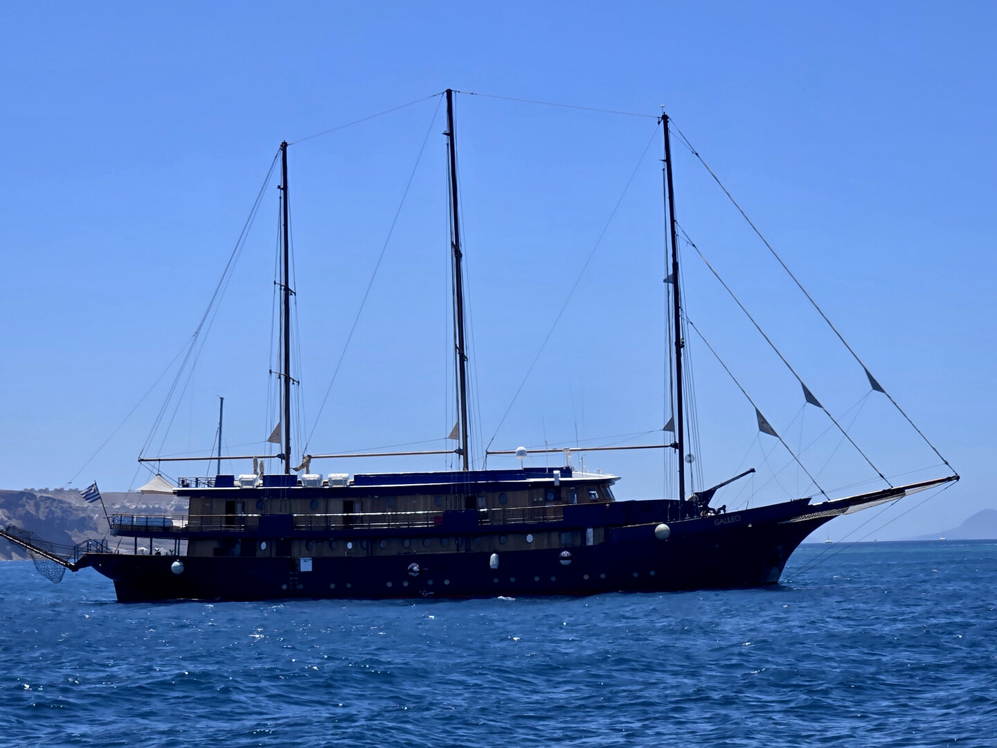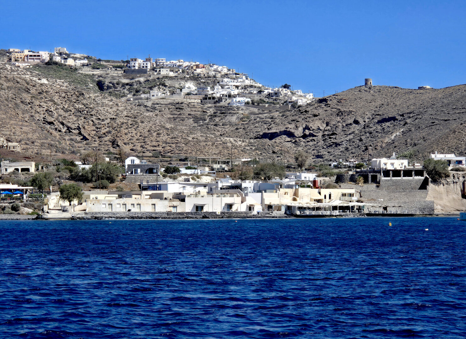 Our final full day in Greece, we took a catamaran tour of Santorini.  When we left the dock for the first hour heading to a cove the wind was strong and being on the water a bit brisk.  Joyce was not a happy camper.  However, we arrived at the cove, the sun was out, the wind was gone and it was beautiful.  The trip back was much better too.