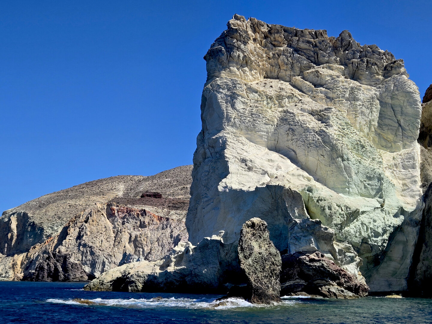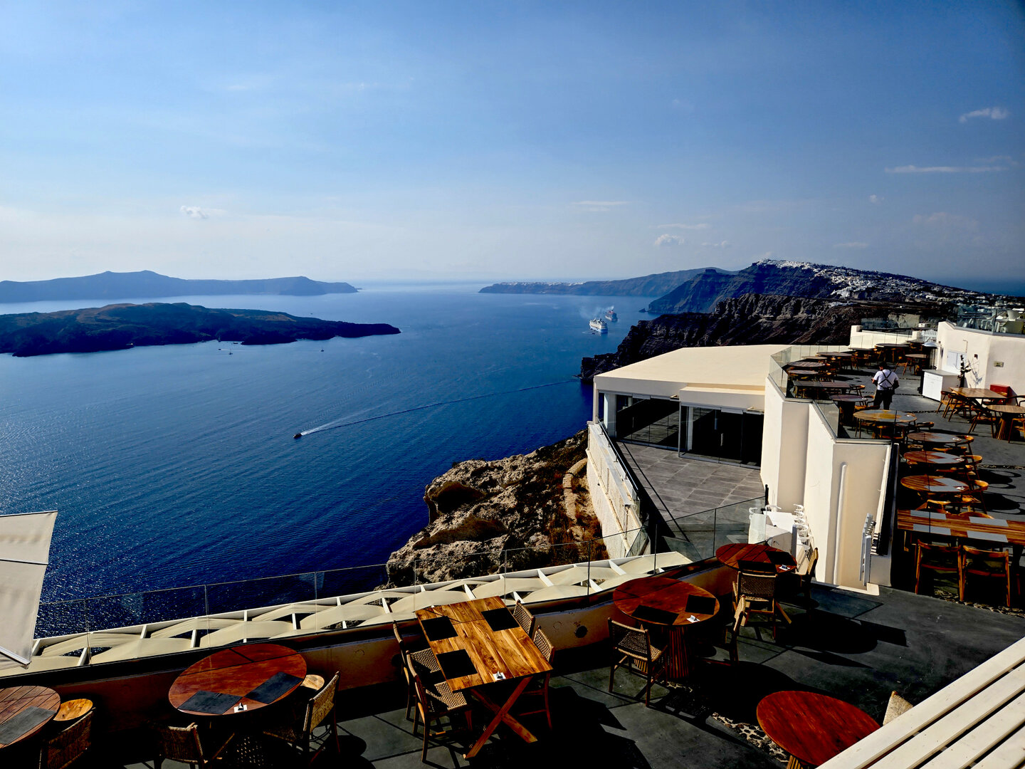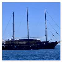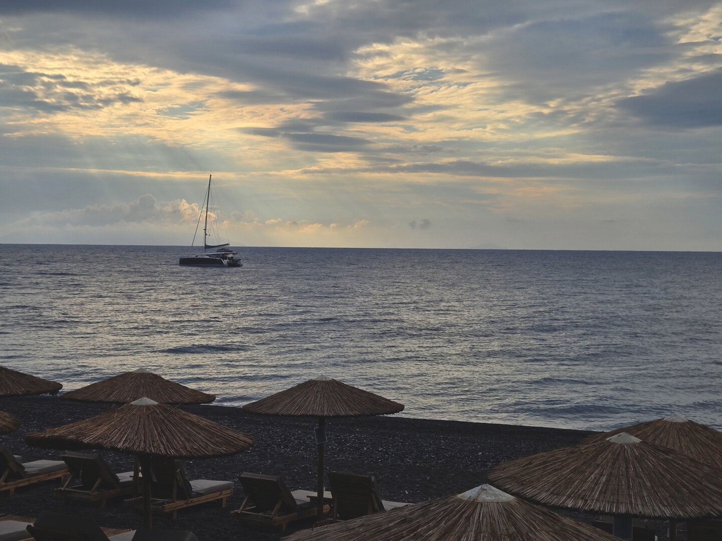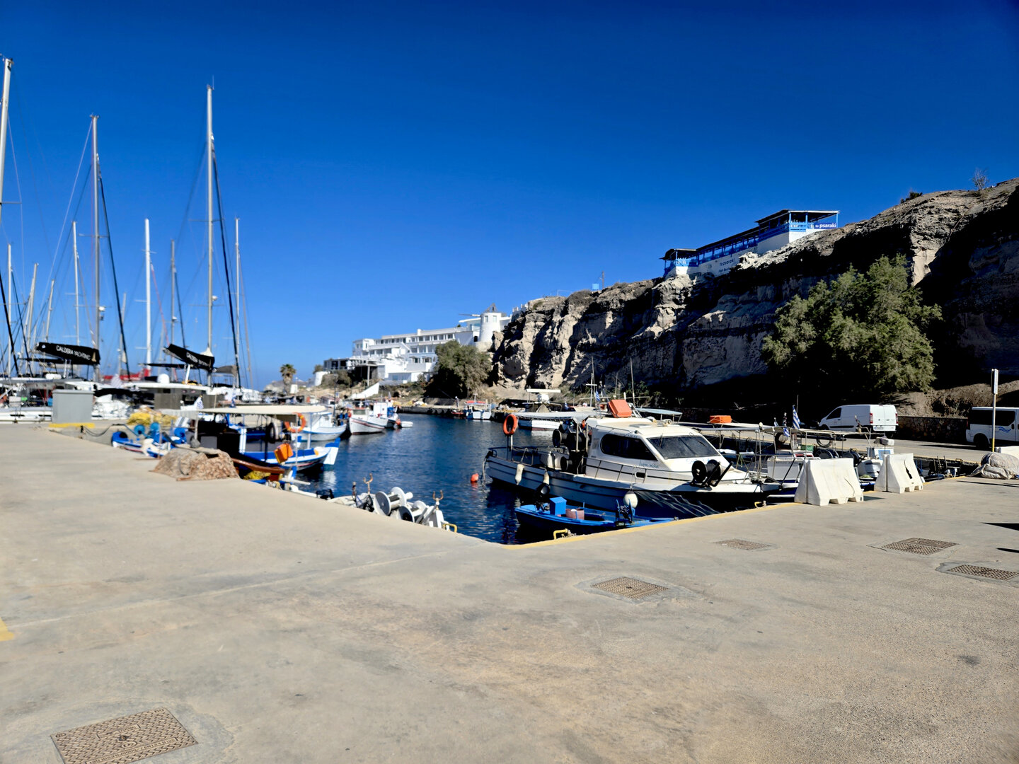 Our final full day in Greece, we took a catamaran tour of Santorini.  When we left the dock for the first hour heading to a cove the wind was strong and being on the water a bit brisk.  Joyce was not a happy camper.  However, we arrived at the cove, the sun was out, the wind was gone and it was beautiful.  The trip back was much better too.